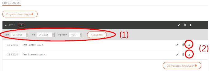 Folgende Auswertungsmöglichkeiten haben Sie: Eine Zeitraumbetrachtung Ihrer Messeergebnisse innerhalb einer Position (1) oder eine Einzelbetrachtung zu einem festen Zeitpunkt (2).